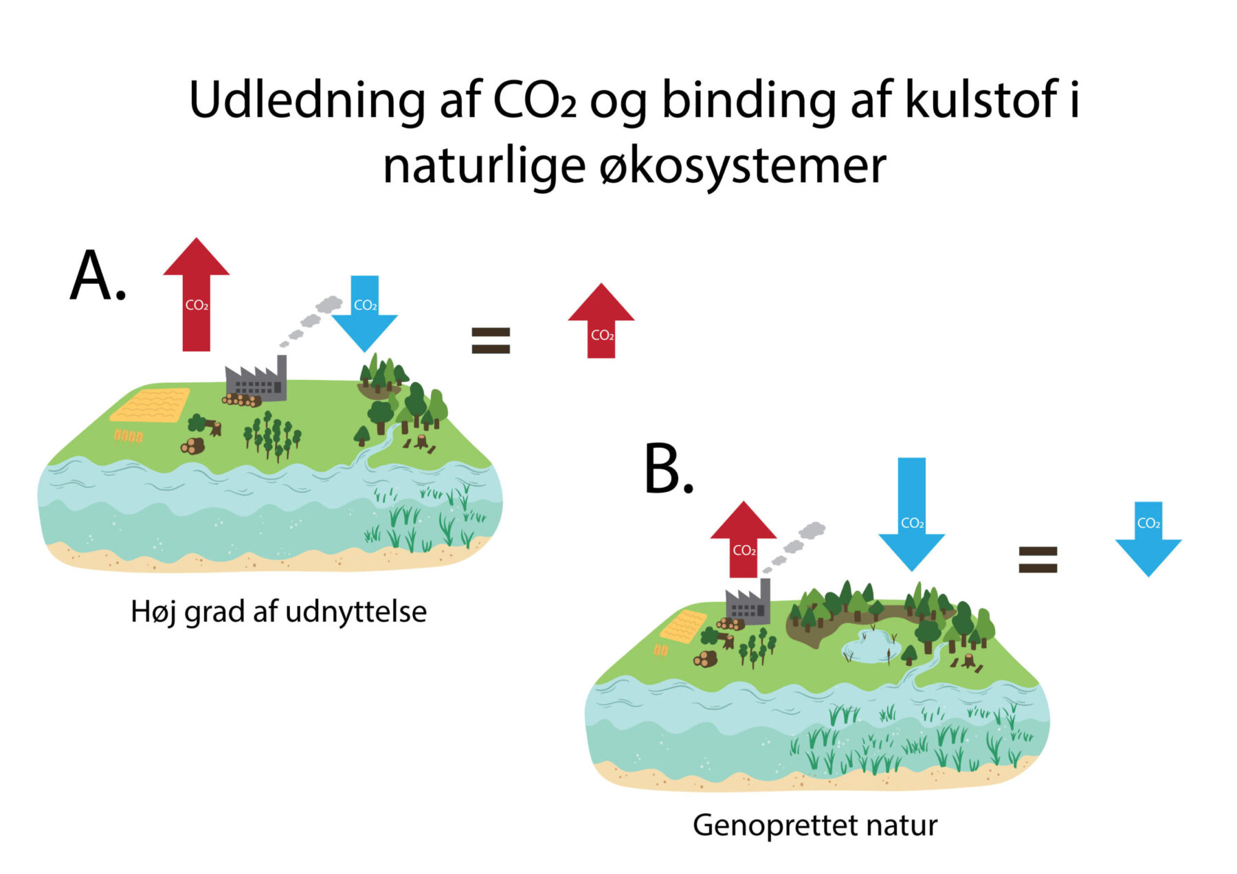 Det er velkendt for de fleste, at der er bundet store mængder kulstof i naturlige økosystemer som fx skov, moser og havet. Men alligevel er det ofte overset, at en meget stor del af menneskets udledning af drivhusgasser stammer fra vores omlægning – og ødelæggelse – af netop naturarealer til marker, produktionsskove, veje og byer. Det er tilfældet både herhjemme og i resten af verden.